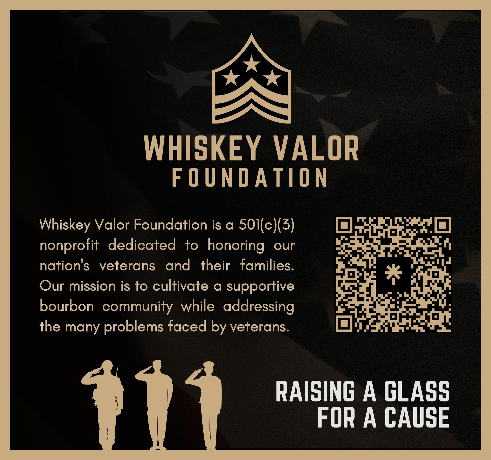 "Whiskey Valor Foundation is a 501(c)(3) nonprofit dedicated to honoring our nation's veterans and their families. Our mission is to cultivate a supportive bourbon community while addressing the many problems faced by veterans. Through barrel picks, we aim to raise awareness and funding for organizations and initiatives that serve veterans."